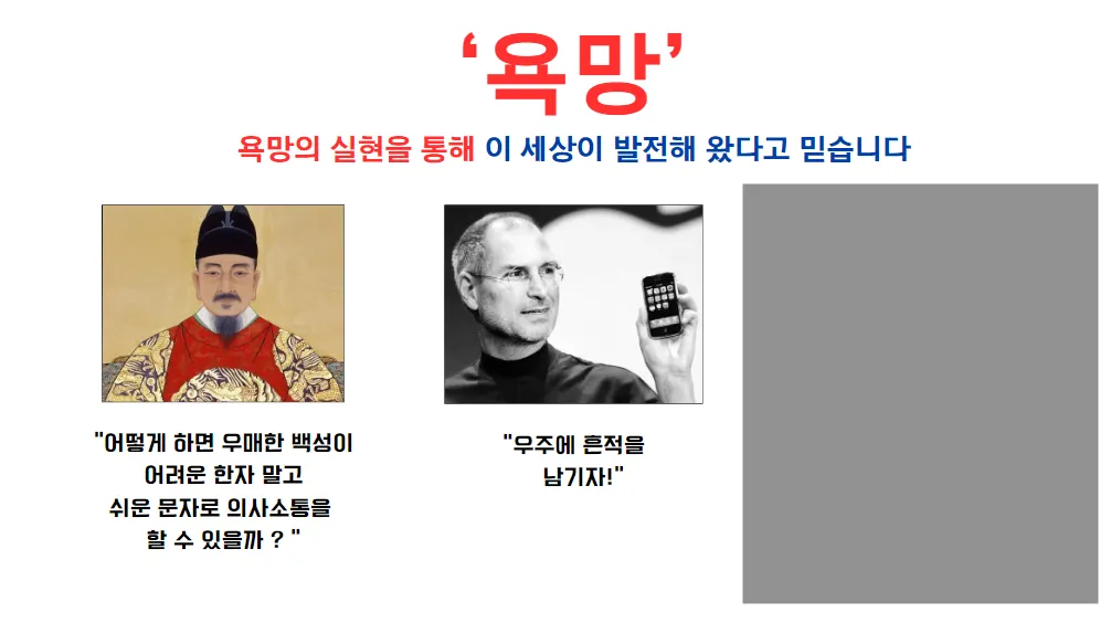 인간에게는 누구에게나 시대가 요구하는 사명이 있다고 생각합니다.