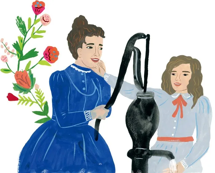 이후에 헬렌켈러의 학습 속도는 놀랄 만큼 빨랐졌지요. 설리번은 손바닥에 사물의 철자를 써 연상시키는 교육 방식으로 고작 몇 개월 만에 헬렌에게 1000개가 넘는 낱말과 구구단, 그리고 점자 읽는 법까지 가르쳤습니다. 이윽고 헬렌켈러가 학교에 다닐 정도의 수준에 이르자, 설리번은 자신이 졸업한 퍼킨스 맹학교에 헬렌을 데려갔습니다. 그리고 헬렌켈러가 명문 여자 대학인 래드클리프 대학(지금은 하버드 대학으로 통합)에 들어가 어려운 공부를 할 때도, 세계 곳곳을 돌아다니며 사람들에게 꿈과 용기를 주는 강연을 할 때도, 은 설리번은 헬렌켈러와 항상 함께 했습니다.